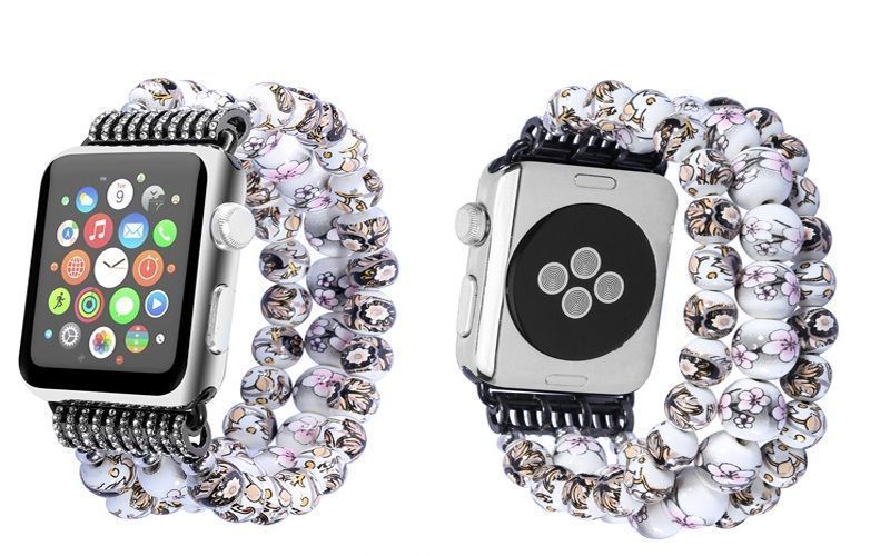 Изготовлен из качественной керамики, он приятен на ощупь и обладает высокой прочностью. Оригинальный дизайн ремешка представлен в виде элегантных белых бусин с очаровательными цветочными рисунками. Благодаря нежной цветовой гамме ремешок гармонично дополнит любой женский образ, будь то повседневный стиль, или праздничный вечерний наряд.